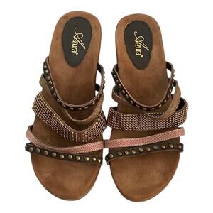 Azura Oletha Slide Sandal Women’s Size 11 Brown Suede Rhinestone Studded. Excellent condition. Fast shipping.