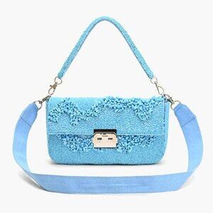 This Azure Blue Skyline Shoulder Bag has it all - fully embellished with a dual handle featuring a top beaded handle and detachable shoulder strap, a padlock mini clasp closure, and lined interiors with a zip pocket. And don't forget the added touch of being fully embroidered for a truly unique look! Get ready to take your fashion game to the next level!