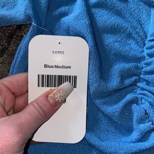 Chic azure top with a stylish ruched front, perfect for casual outings.