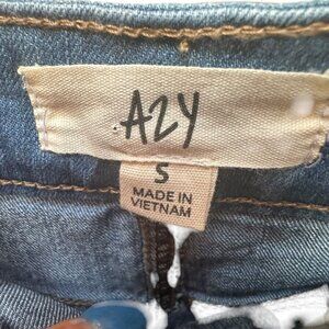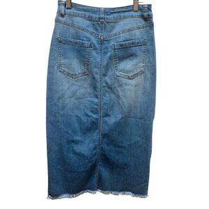 Azy Distressed Denim Pencil Skirt Blue Front Slit Frayed Hem Boho Festival S