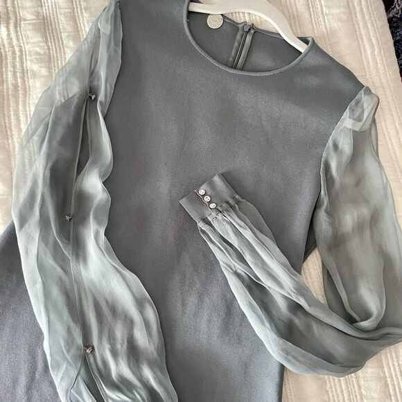 Azzaro Paris Small Knee Length Mother Of The Bride Event Party Dress Sheer Arms