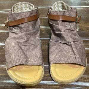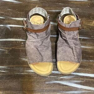 What's the hottest Blowfish Malibu style? Boxie! This canvas covered sandal features a 1 inch micro-wedge heel, cut out detailing, strap and buckle pops and an inside zipper for easy on/easy off. The cushioned footbed allows for all-day comfort.