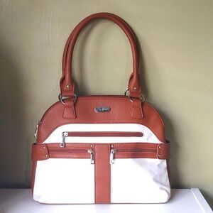 B.Amici Amelia White & Tan RFID Dome Satchel