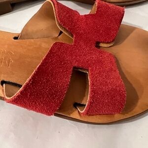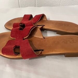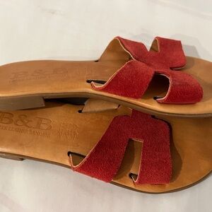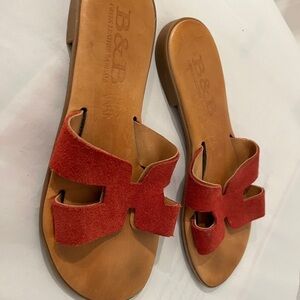 B& B red suede leather slide sandals Size 7.5 Suede Imported Preowned-great condition