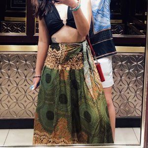 B BANGKOK PANTS Long Maxi Skirt Boho Gypsy Hippie Green Floral (One Size Fits)