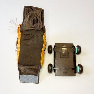 Cute soft plush taxi cab car with removable wheel base. Perfect first toy car for your infant that grows as they do. You can put the wheel base back on the bottom when they are ready to use push toys, or take it out if they just want the stuffy. No wear that I can see.