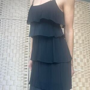 rare Vintage B. bayou black crystal pleated tiered chiffon full length strappy gown tagged an 8 fits size small,