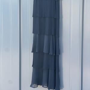 B. Bayou Women's 8 Dress Black Crystal Pleated Tiered Chiffon Full Length Gown