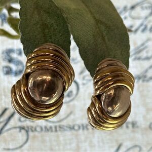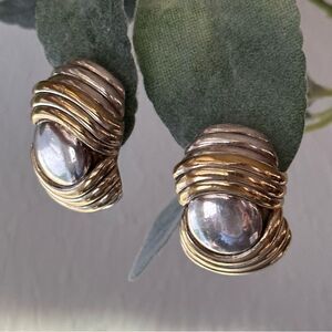 B. Bergner Modernist Electroform Rolly Polly Statement Clip On Earrings 2 Tone