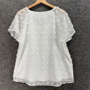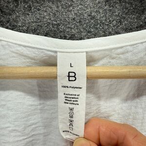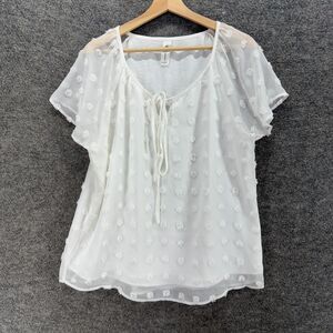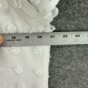 B Blouse Women L Large White Polka Dot Embroidered Tasseled Short Sleeve Casual