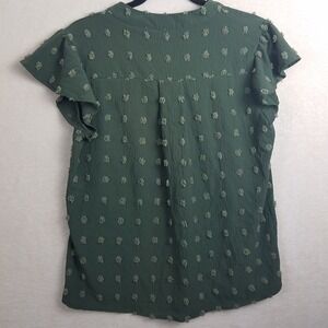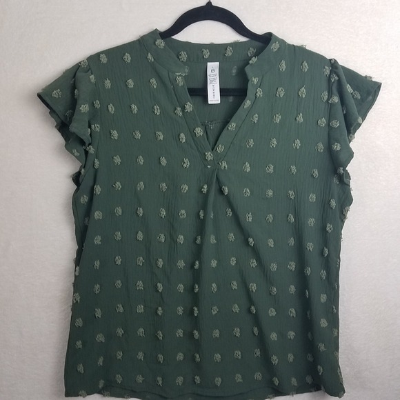 B Brand Women's Dark Green Textured V Neck Flutter Sleeve Top Size L