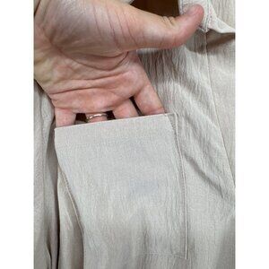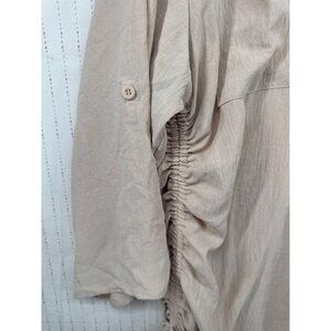B Brand Womens Top Sz L Beige Ruched Collared Popover Tunic Beachy Minimalist
