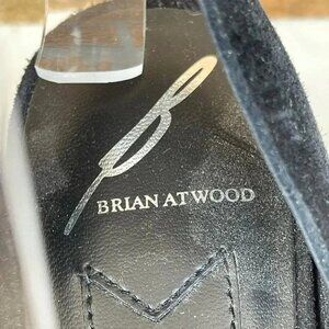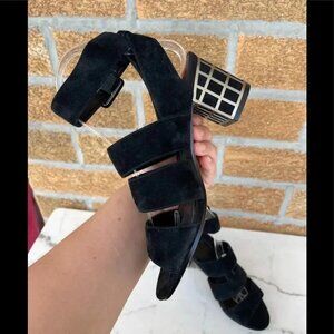 B Brian Atwood Baily Ankle Strap Sandals Heel Suede Black in good condition