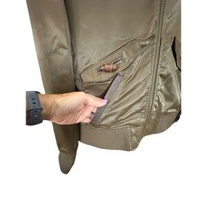 This B By Burton jacket is a must-have for any fashion-forward woman. The brown color and solid pattern make it a versatile piece that can be worn for any occasion. The jacket features a full zip closure with leather trimmed accents and pockets for added convenience.