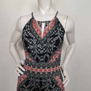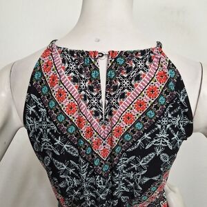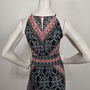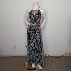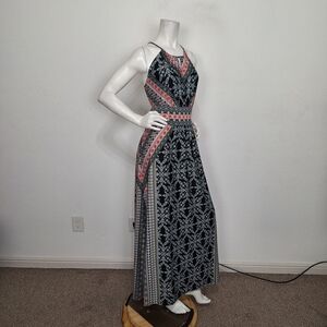 B. Calm Black Muti Keyhole Floral Boho Romantic Halter Neck Maxi Dress Size XL