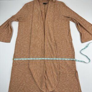B Collection by Bobeau X Rent The Runway size medium cardigan, it is the Ellen style, brunt orange color, ribbed pattern, shawl collar, waterfall lapel open front, 3/4 sleeve, longer length, relaxed fit, stretch, hidden pockets, accent back, slit side hem, medium weight tight knit fabric. Materials 83% polyester, 12% rayon, 5% spandex. Care hand wash cold, lay flat to dry. Condition is preloved very good as shown in pictures. Please preview the measurements to ensure fit. Size 6 dress form used in photos. MFSR $58.00