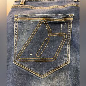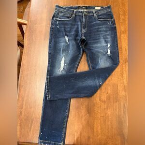 B Couture High Barnet Taper Fit Jeans Paint Splatter Mid Blue Stretchy Men Sz 36