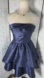 Pretty strapless dress in a rich midnight blue. Tiered ruffles . Zips in back, fully lined Small petticoat for volume. Perfect for any occasion.
