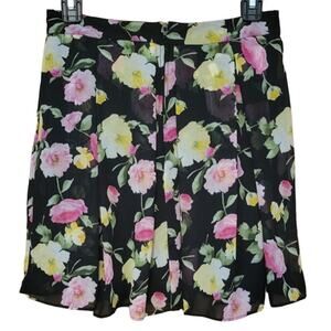 B. DARLIN Pleated Black & Pink & Yellow Floral Lined Twee Mini Skirt - 3/4