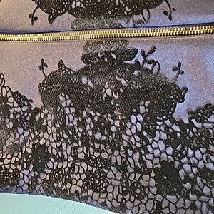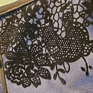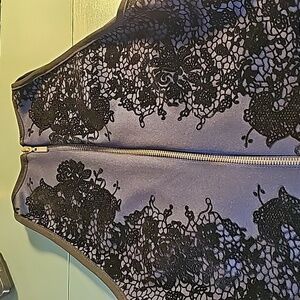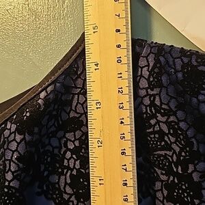 This beautiful dress is in very good condition and quality. Exposed zipper in back. Pit to pit flat measurement is 15". waist is 13" flat measurement. dark romantic. The top to bottom length is about 33". Consider making a bundle and get an even better offer and save on shipping.