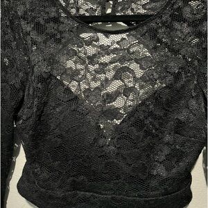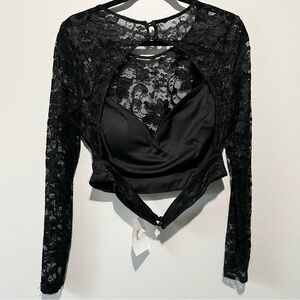 B.DARLIN- NWT Black Sparkly Long Sleeve Cropped Top Size 13/14. Inner bra cups with back opening. Also has buttons above back opening.