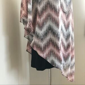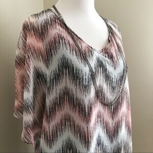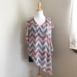 Flowy chiffon poncho-style tunic blouse in an artsy chevron print