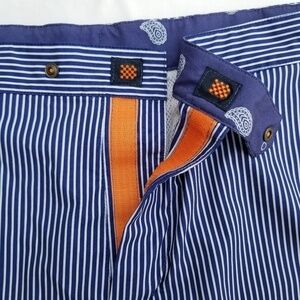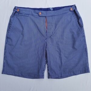 B. DRADDY- Men’s Sz. Large- Blue And White Stripe Swim Trunks- Golf Board Shorts