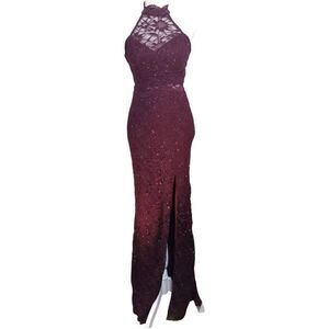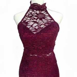 B Darlin 2 pc Burgundy Wine Formal Dress Lace Skirt Cut Out Top Jr Sz 3