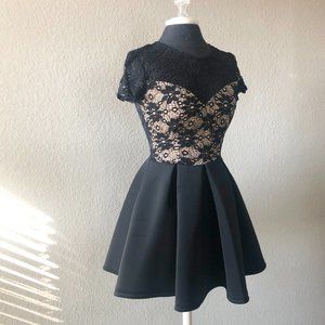 B. Darlin' Black Peplum Lace Semi-Formal Mini Dress