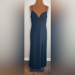 B Darlin Black Slitted Spaghetti Strap Sweetheart Full-Length Gown 13/14