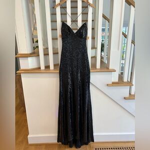B. Darlin Black Sequin Open Strappy Back Long Gown
