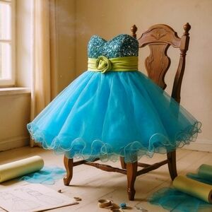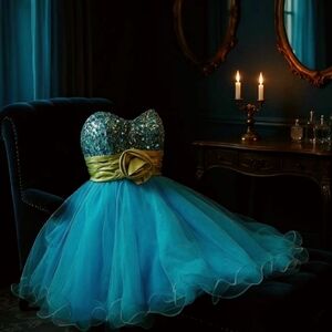 B Darlin ✦ Blue Strapless Party Dress ✦ Sequin Bodice + Tulle Flare ✦ XS EUC