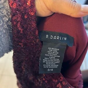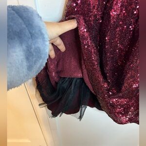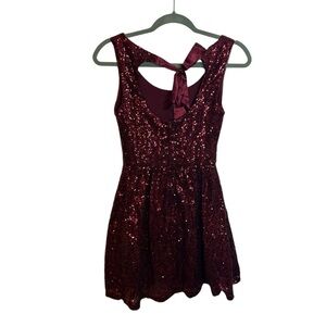 Pre owned excellent condition. Worn once or twice. Gorgeous burgundy sequin fit and flare dress with open tie back. Has some tulle in the skirt. This is the perfect holiday and Valentine’s Day dress! Juniors size 3/4.