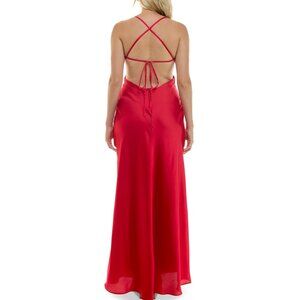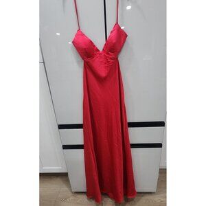 B. Darlin Cherry Red Long Social Gown With Spaghetti Straps Size 15/16 100% Poly