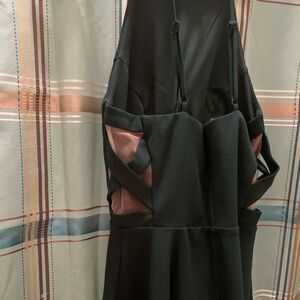 B. Darlin Dark green short dress with halter top style and sheer mesh panels X s