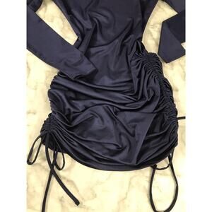 B Darlin Dress Ruched Bodycon Mini 7/8 Satin Silky Smooth Party Cocktail Blue