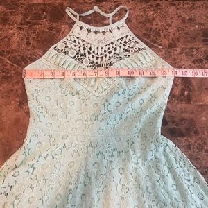 B. Darlin Dress Size 1/2 Sleeveless Halter Neck Fit-And-Flare Lace Teal