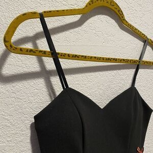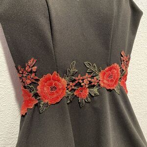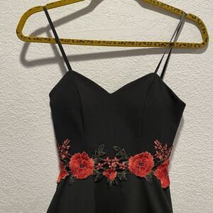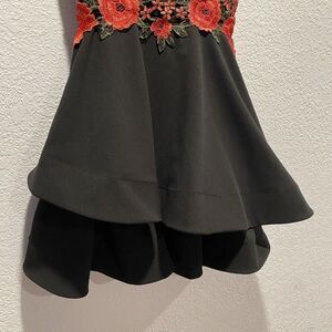 B Darlin Embroidered Dress Size 4 Black Red Floral Spaghetti Strap Ruffle