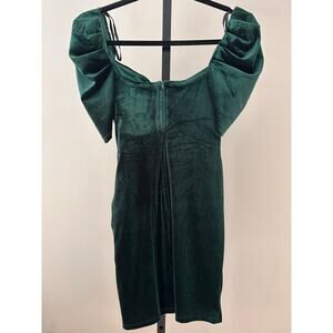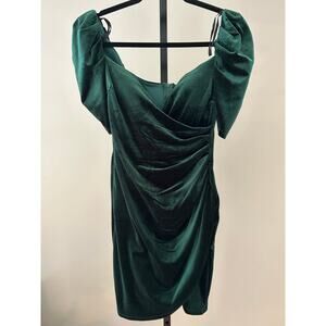 B Darlin Emerald Green Velvet Puff sleeve Dress- size 3/4