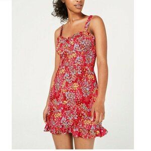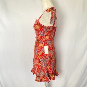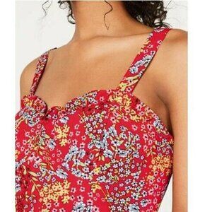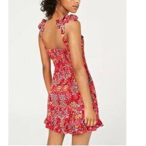 B Darlin red dress with flowers all over. It has faux ties on the shoulders and a zipper in back for closure. Full lining. NWT...size 1/2 junior...no flaws noted...see photos for care details...021121