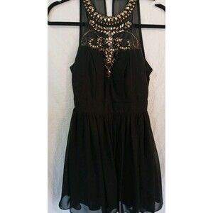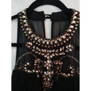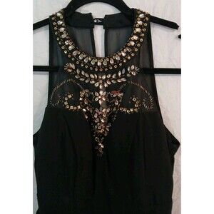 B. Darlin Junior/Womens Black And Gold High Neck Beaded Skater Dress Size 1/2