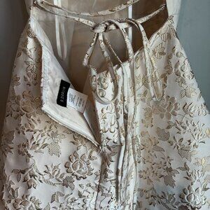 B Darlin Juniors 15/16 Lace-Up Floral Embroidered Jacquard A-Line Dress Gold Champagne
