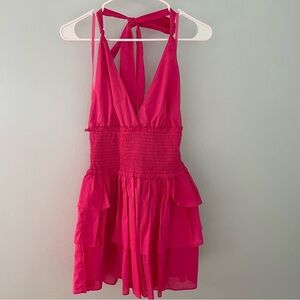 B Darlin Juniors Cotton Halter Smocked-Waist Tiered Dress pink 11/12 NWT