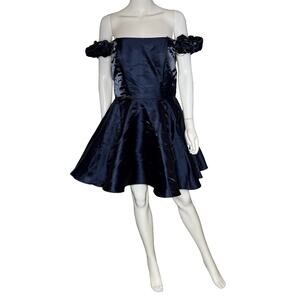 B Darlin Juniors' Rosette Off-The-Shoulder Fit & Flare Dress Navy Sz 13/14