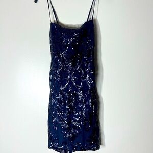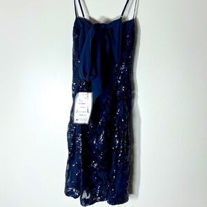 B Darlin Juniors' Sequined, bodycon bow-Back Dress - Navy New 13/14