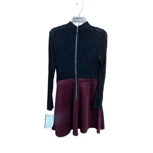 B. Darlin Lace Top Dress Black/Wine Sz 11/12 NWT Back zipper Pleated skirt