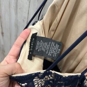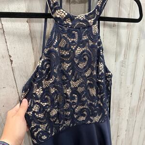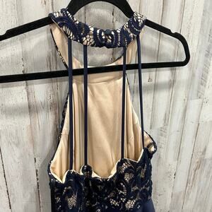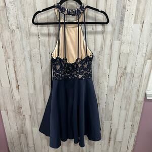 B. Darlin Navy Blue Lace Overlay Fit & Flare Halter Backless Mini Dress 7/8