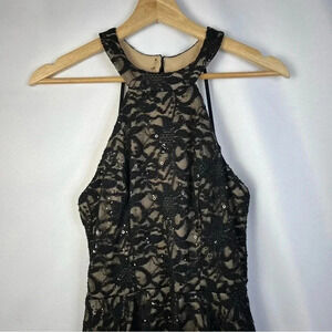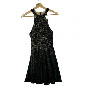 B Darlin Navy Blue & Nude Glitter Lace Fit & Flare Mini Dress 8