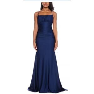 B Darlin Navy Blue Ruched Spaghetti Strap Backless Dress 1/2