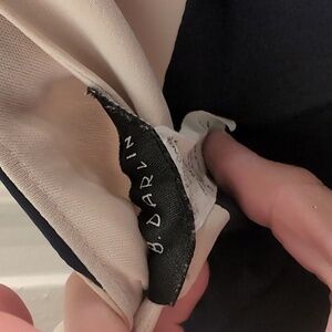 B Darlin Navy Blue and Cream Striped Midi Dress